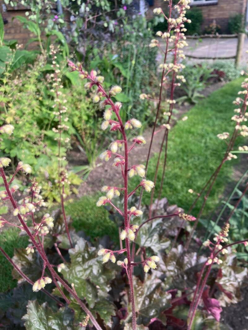 Een hoge en forse Heuchera met ijle stengels met crème witte bloemetjes boven purperrood blad; dit geeft een zeer mooi contrast. Deze soort zie je niet vaak. Wordt veel bezocht door insecten. Dit worden vrij grote, maar nette pollen.